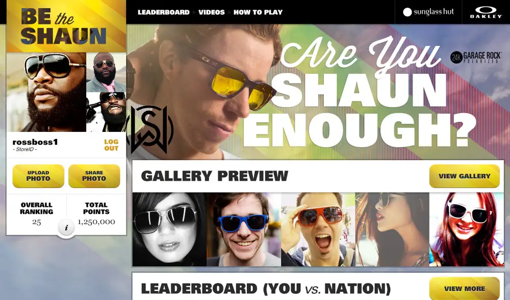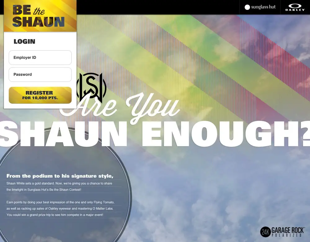 Contest design for Sunglass Hut. Employees would upload photos and be voted on by other users on their likeness of Shaun White. They also had the ability to browse the site and vote on other employees photos.