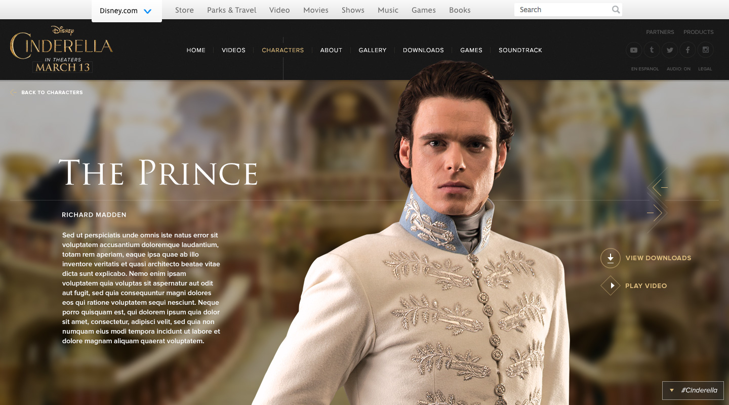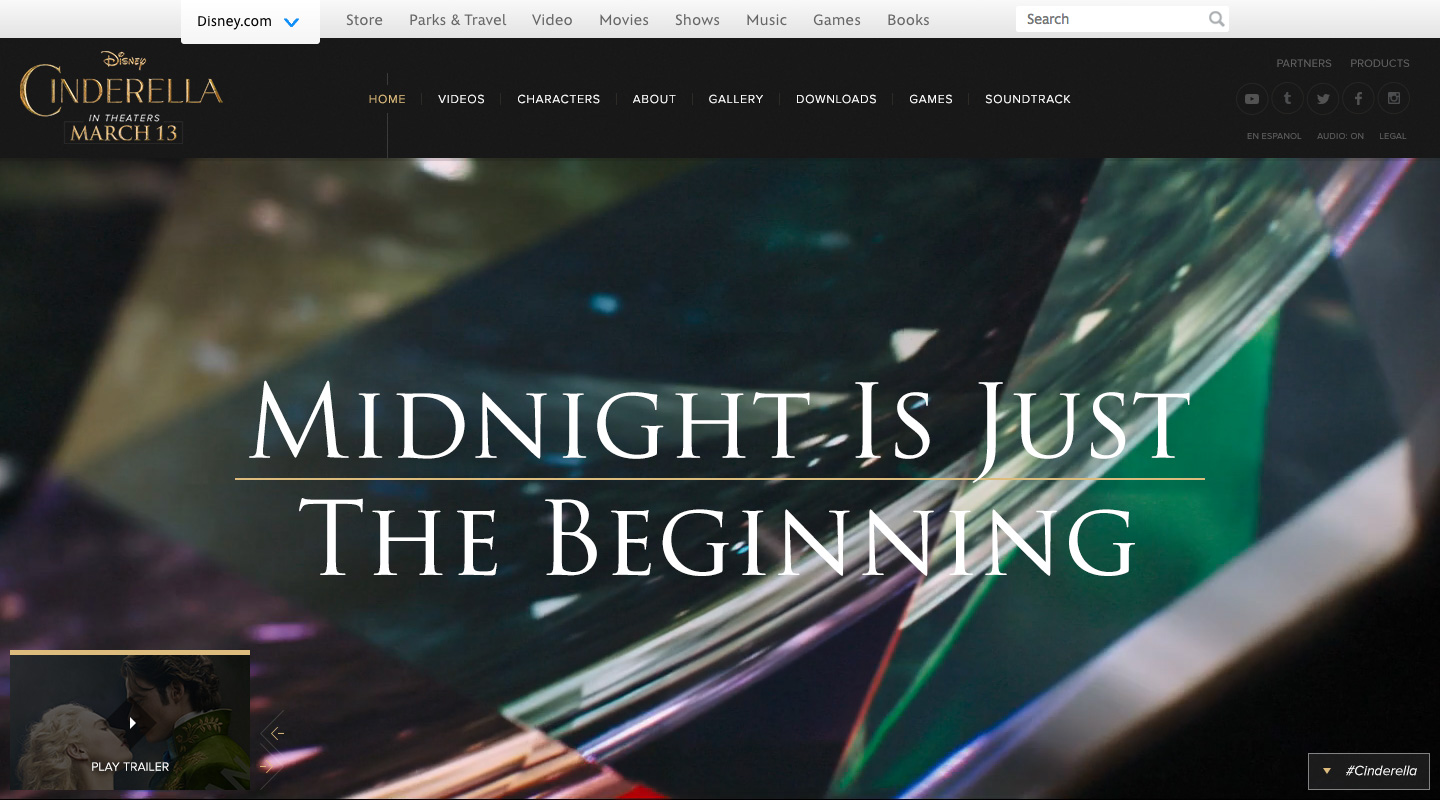 Cinderella is one of those classic Disney animations, and I was fortunate to design the official site for the live-action remake.